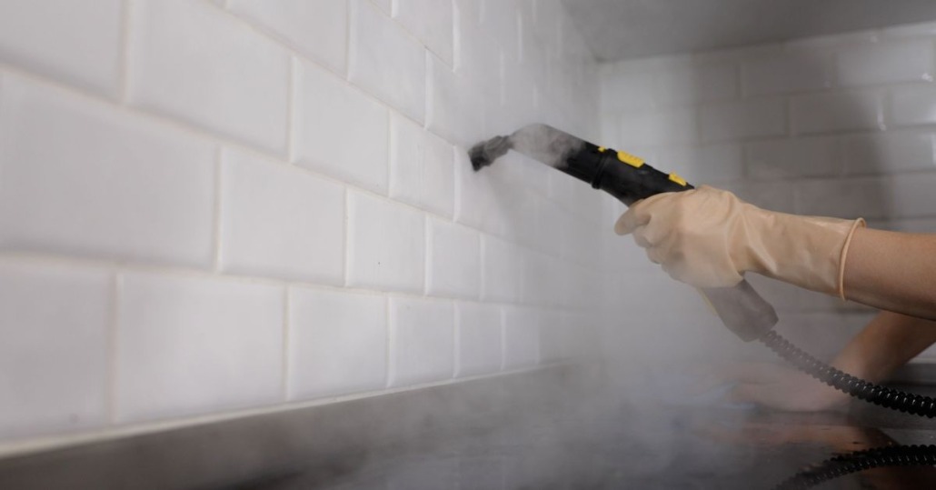 • Hot water extraction / pressure rinse: We steam clean tiles and grout with controlled heat and pressure, safely capturing waste.